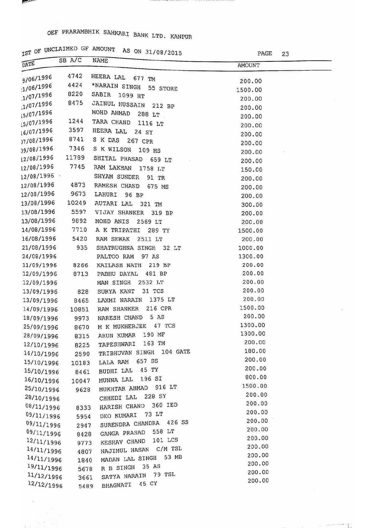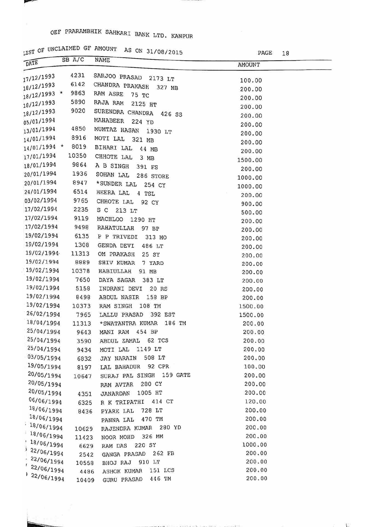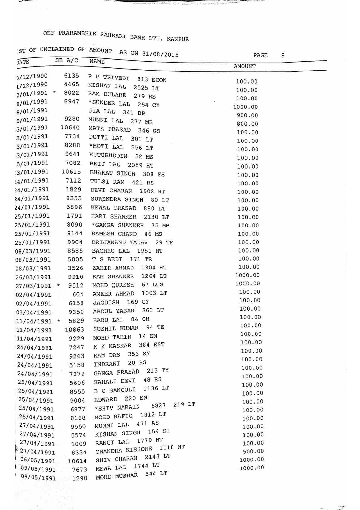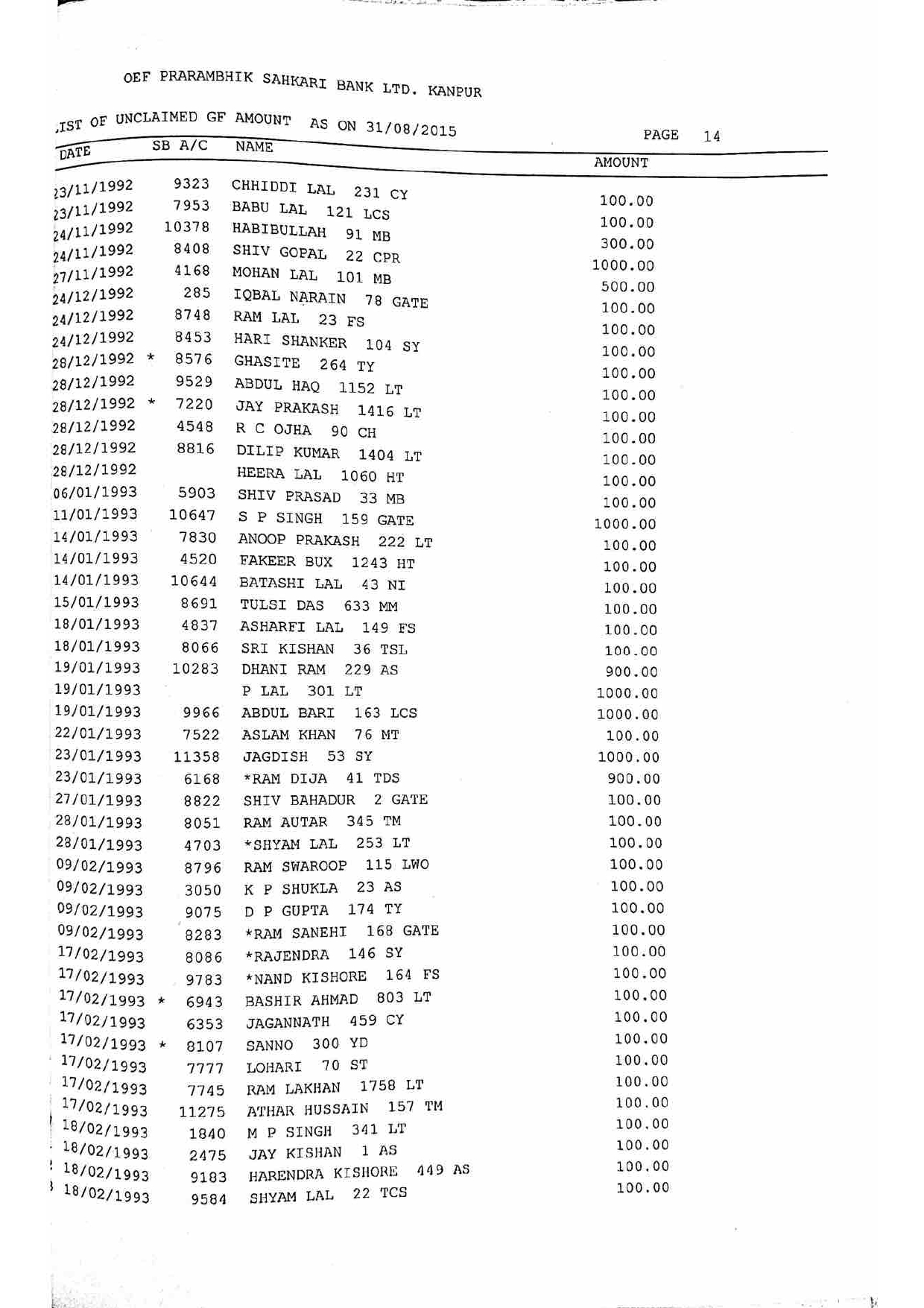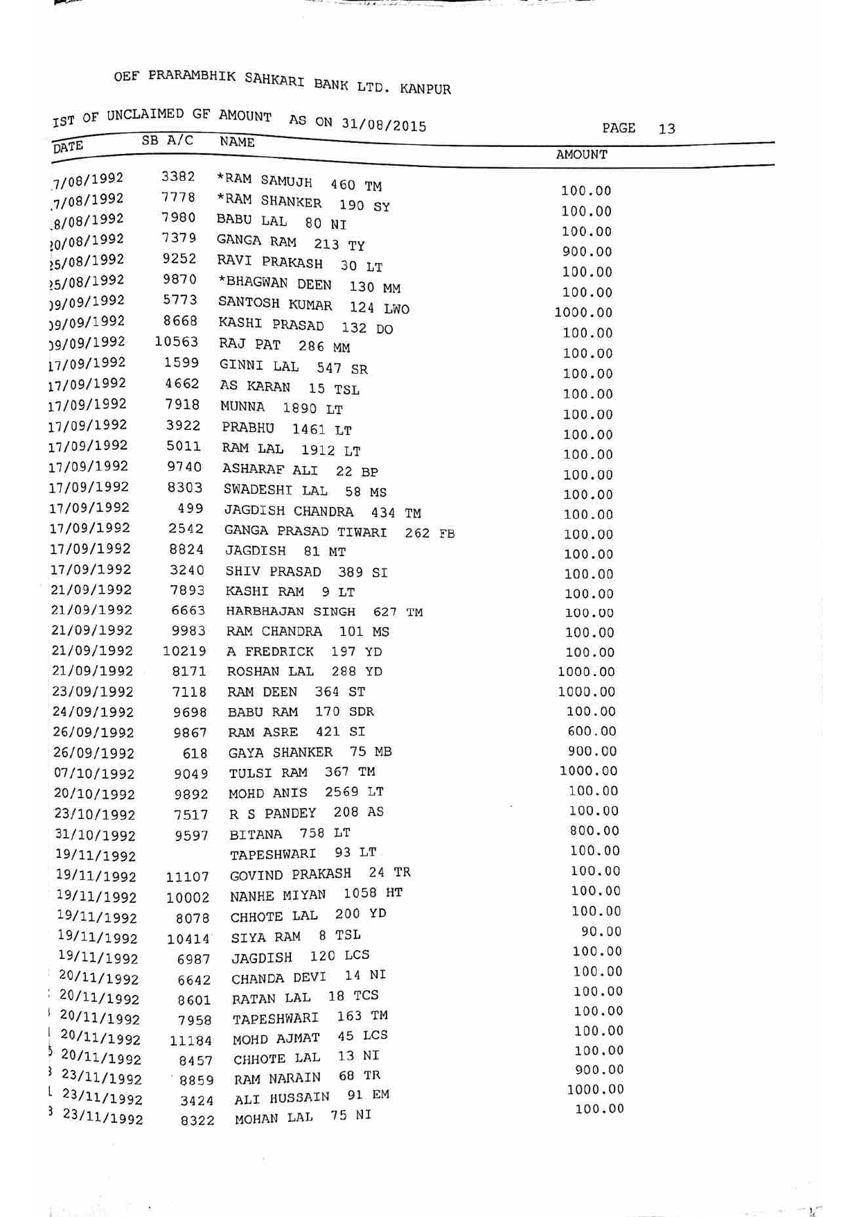 For Unclaimed Deposit data you can click here-