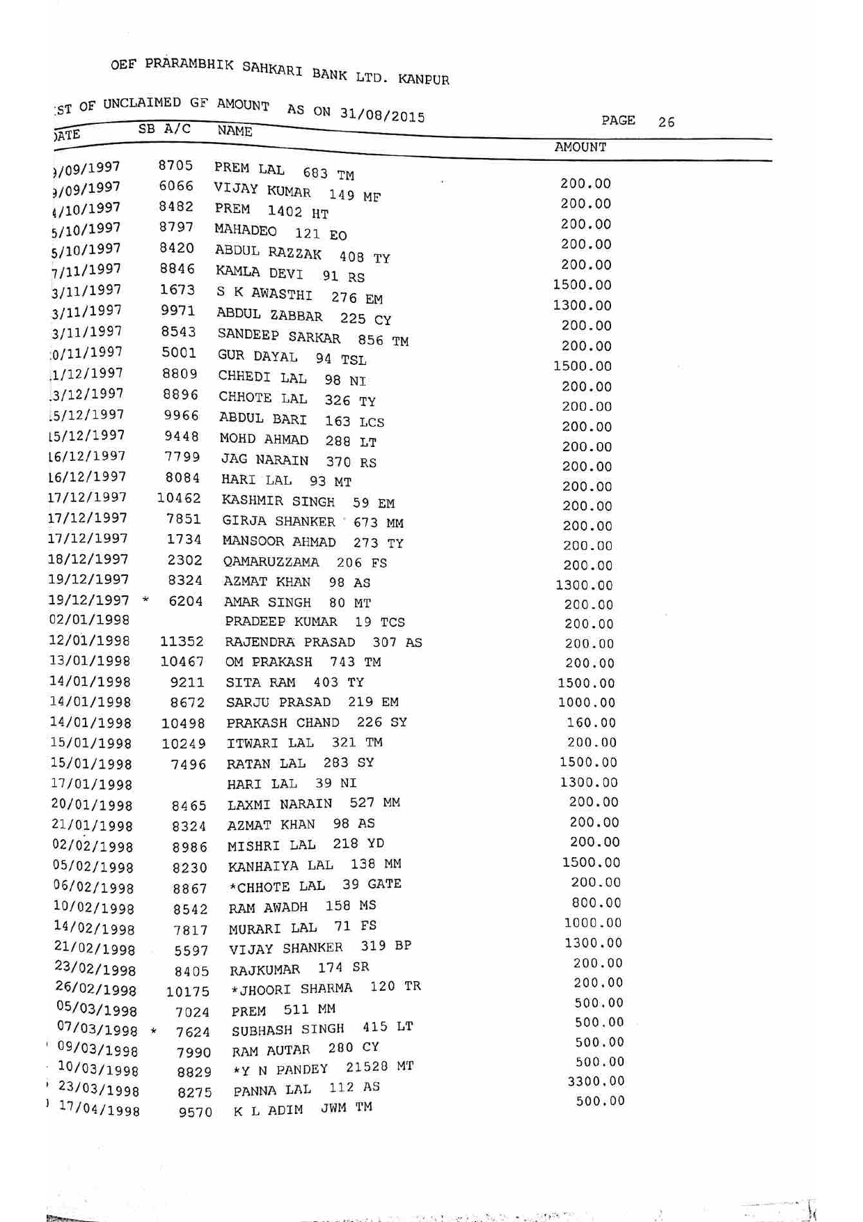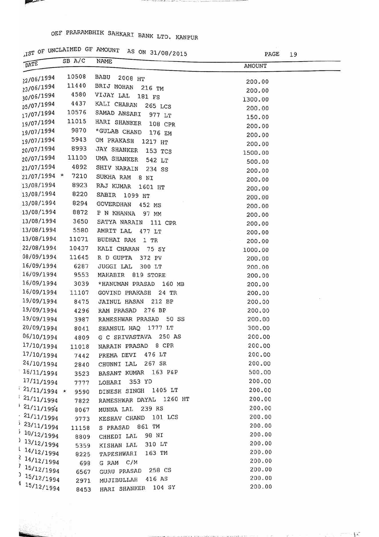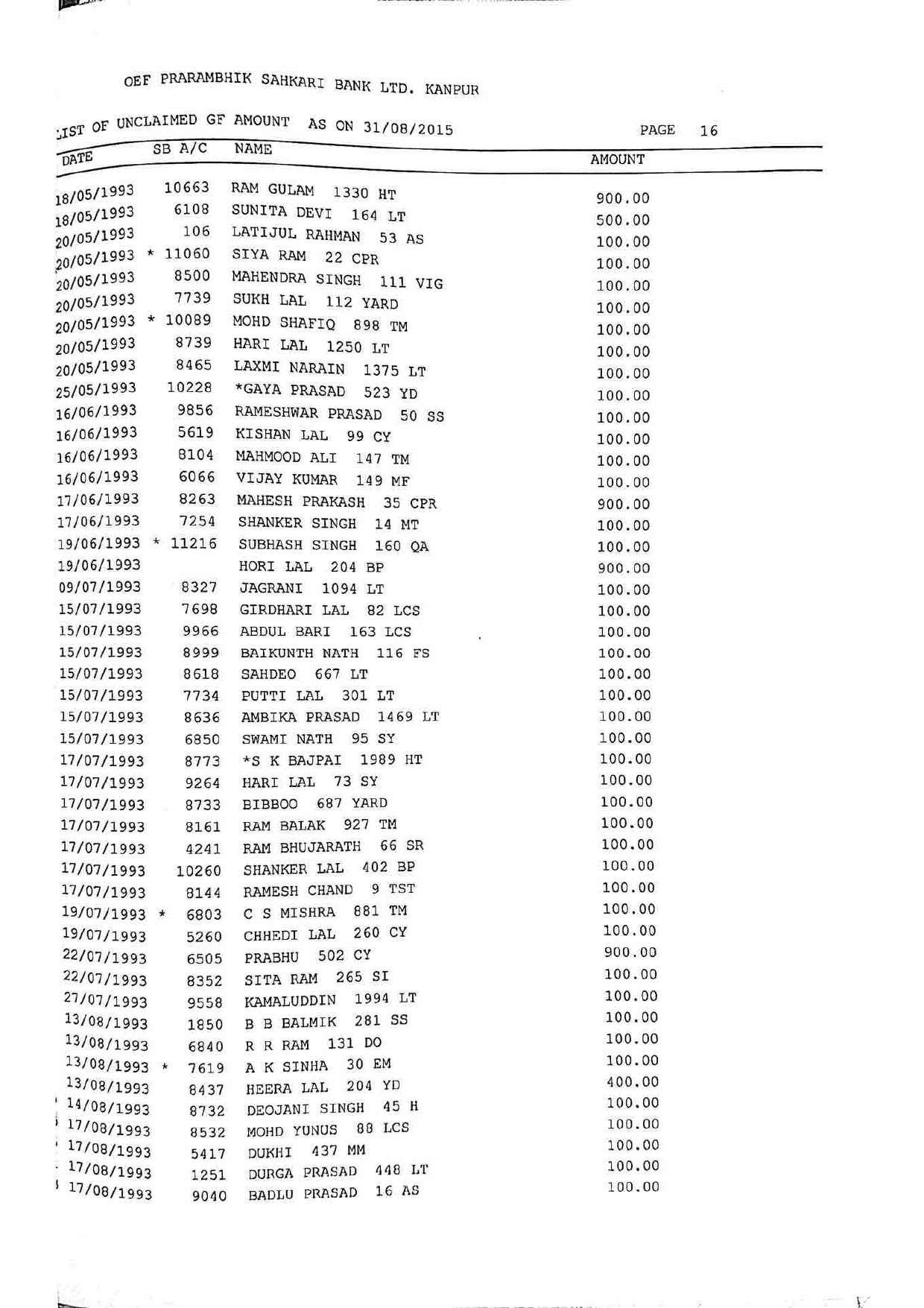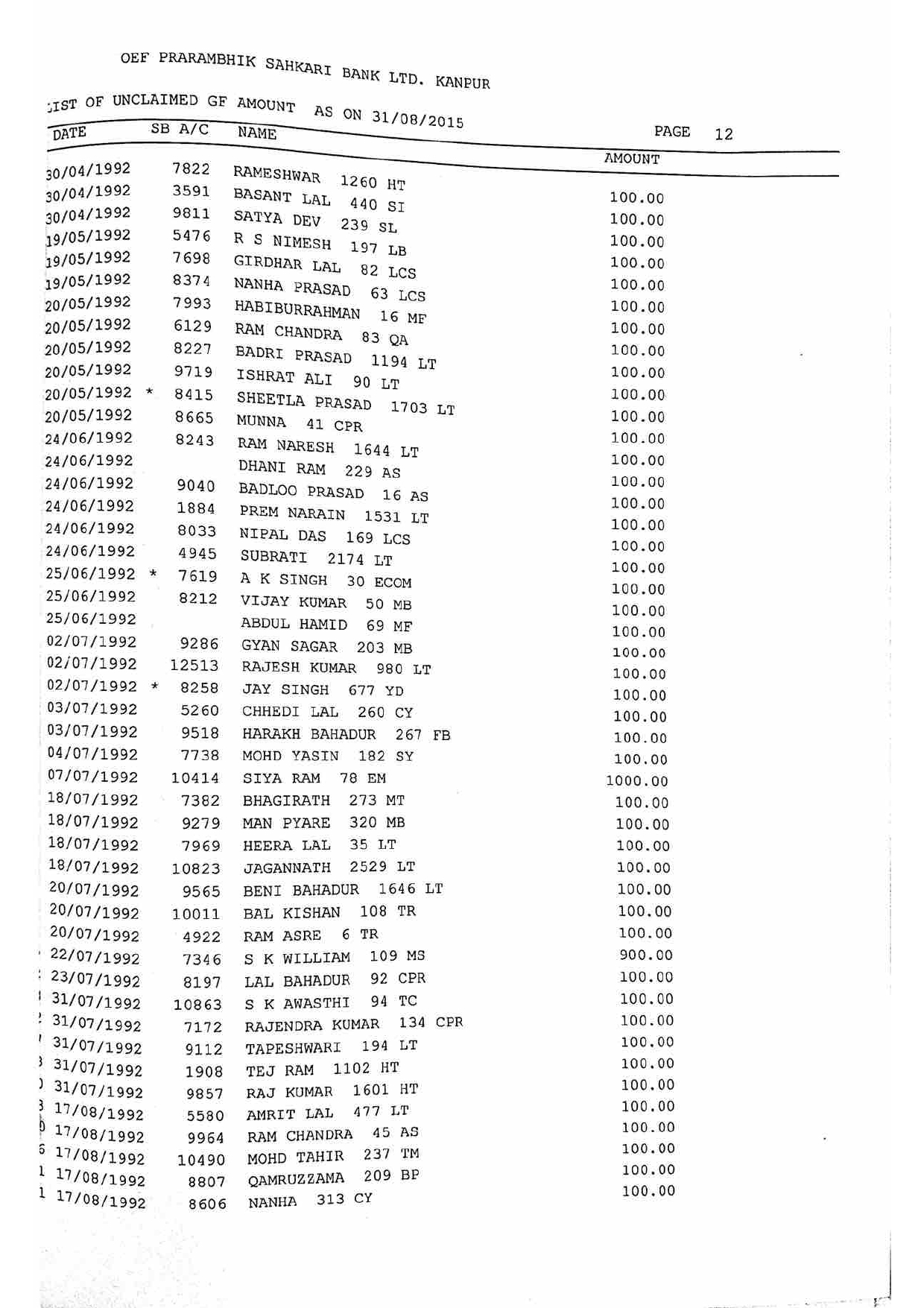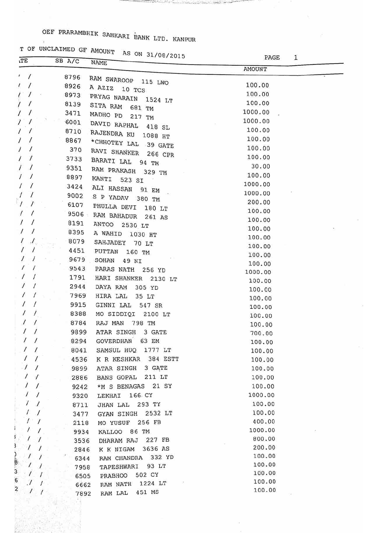 For Unclaimed Deposit data you can click here-