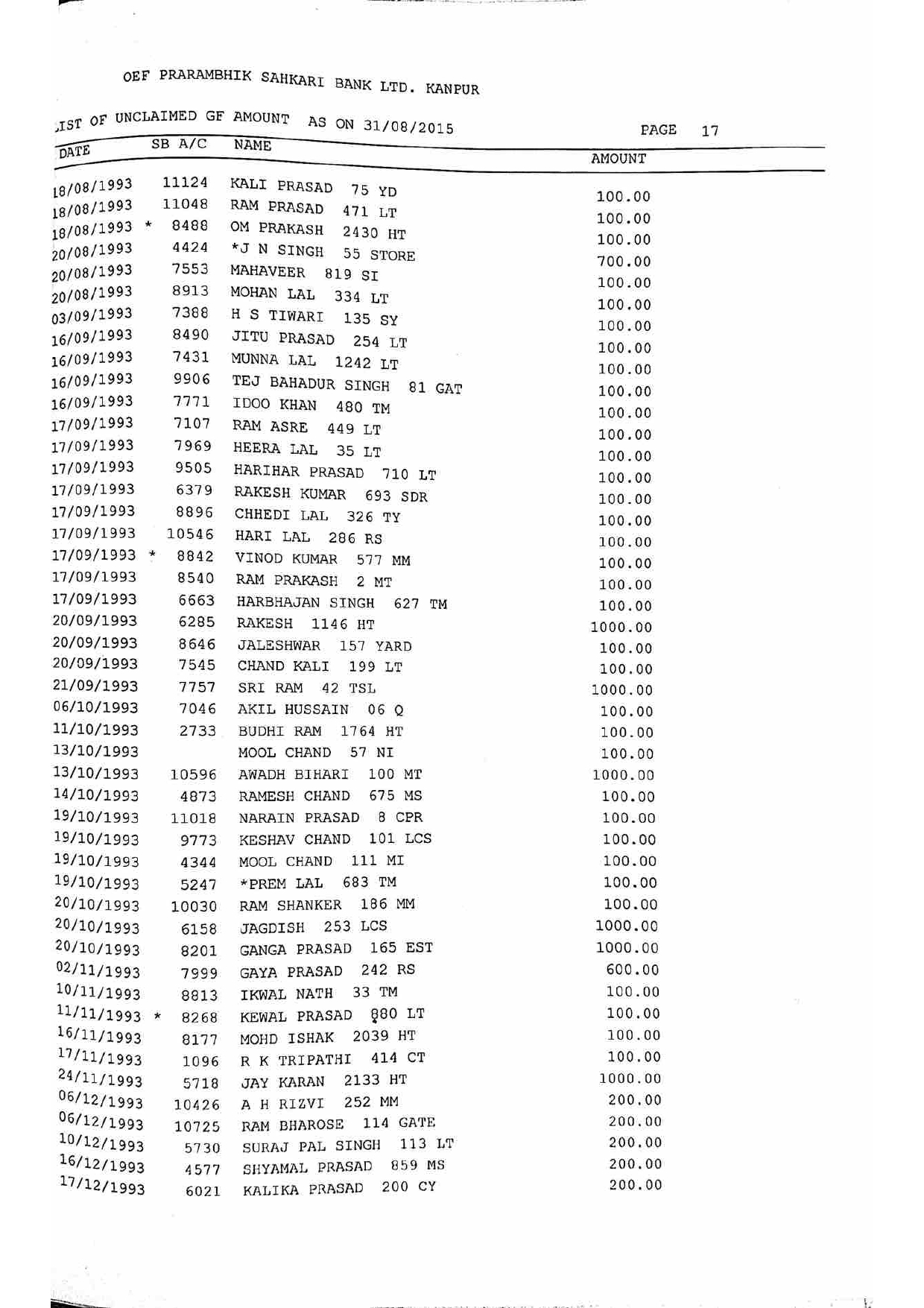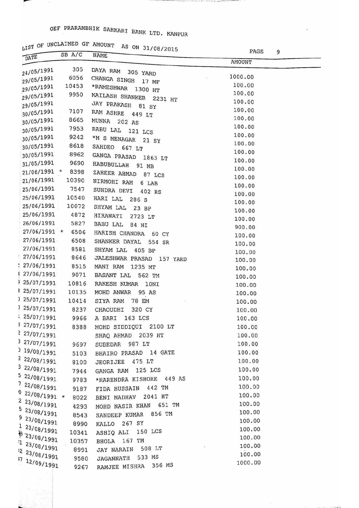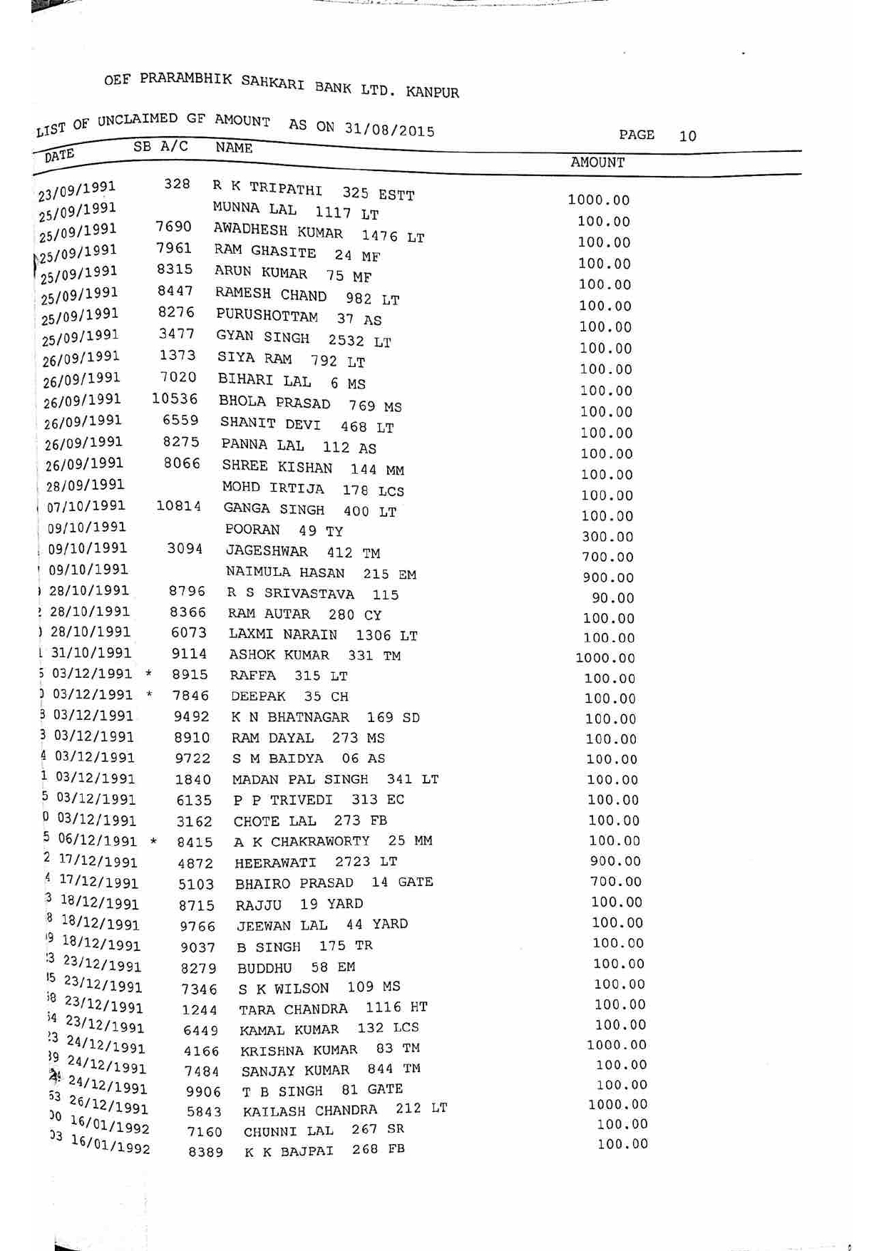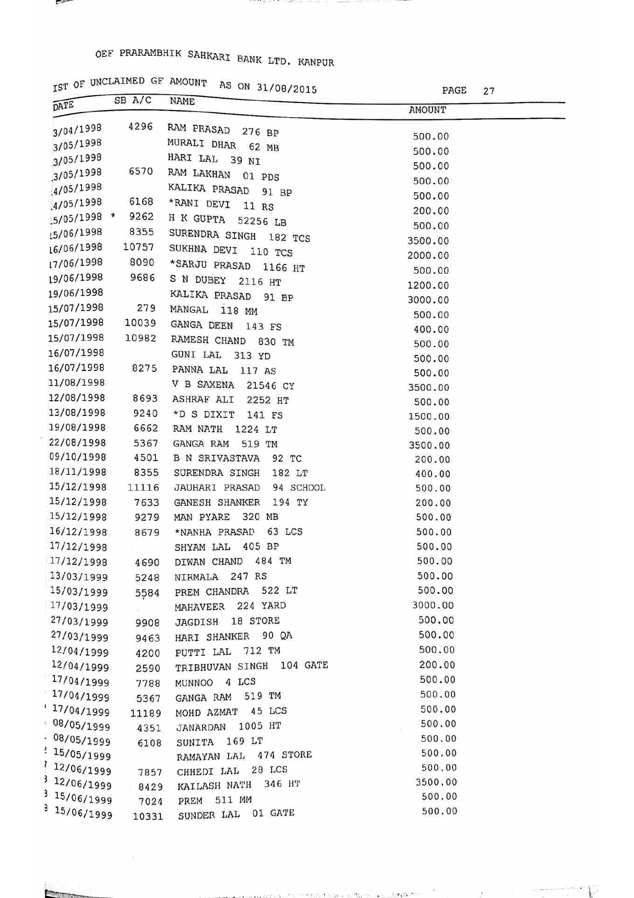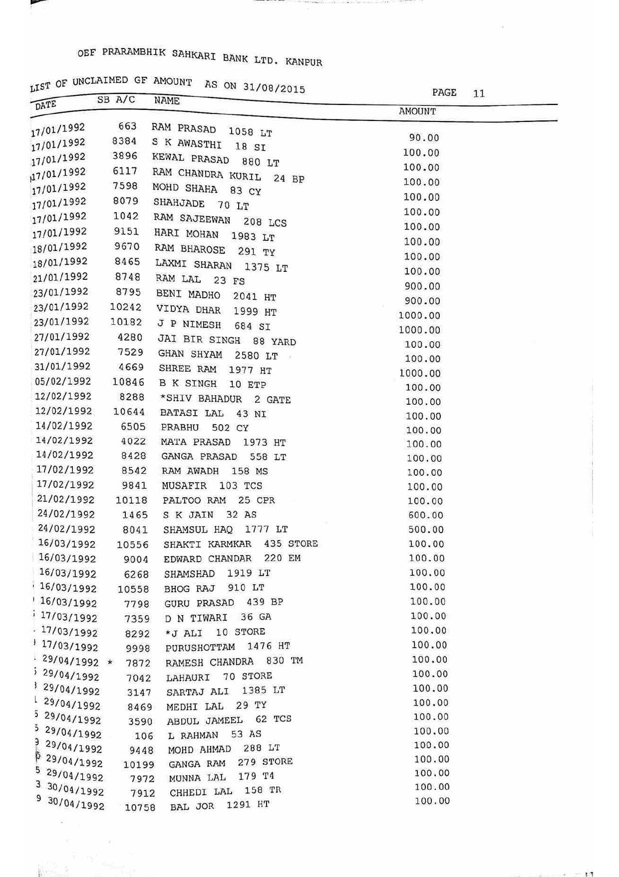 For Unclaimed Deposit data you can click here-