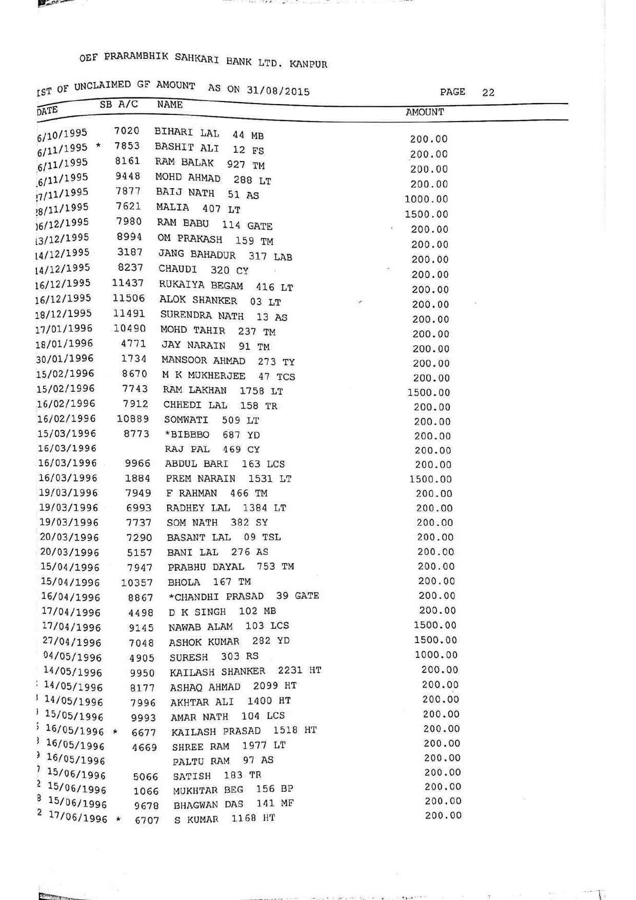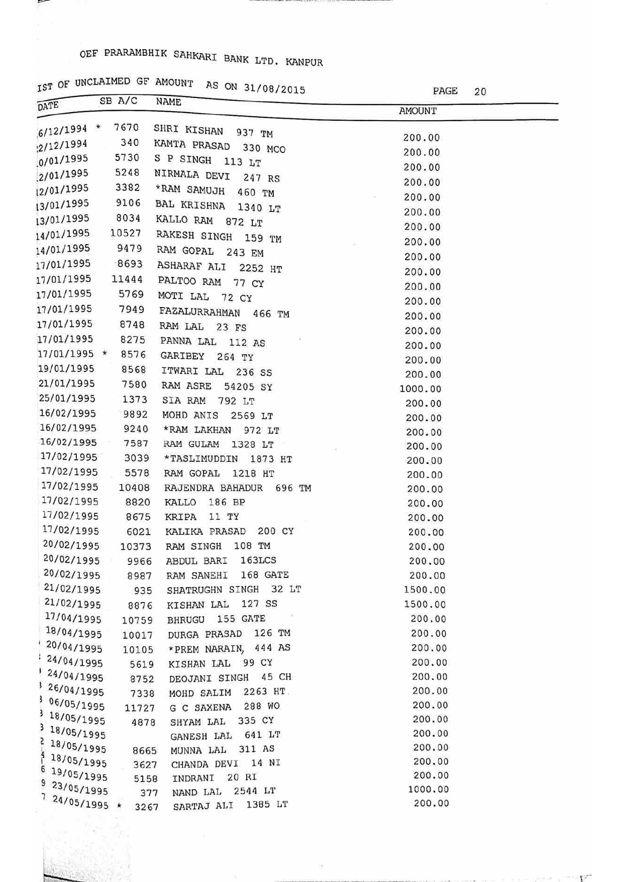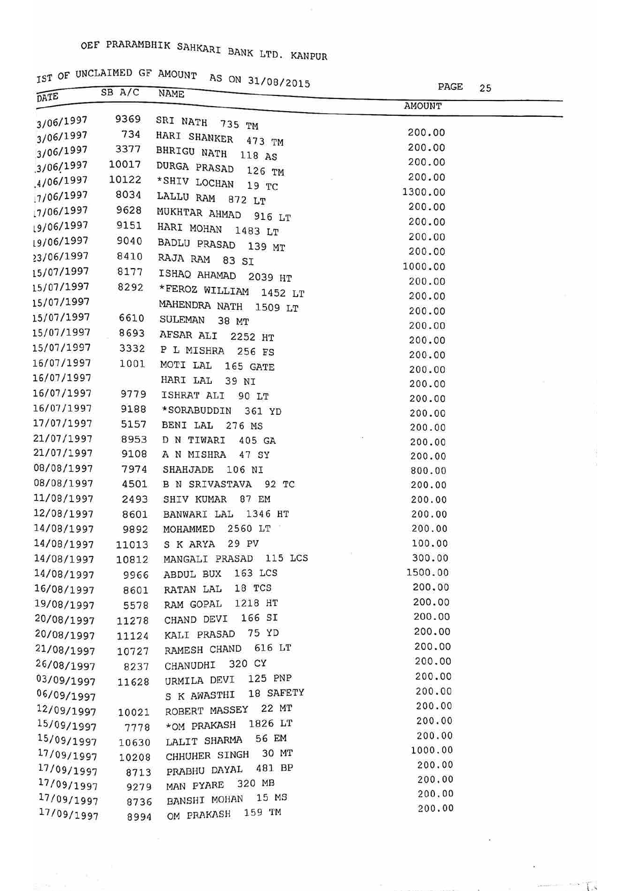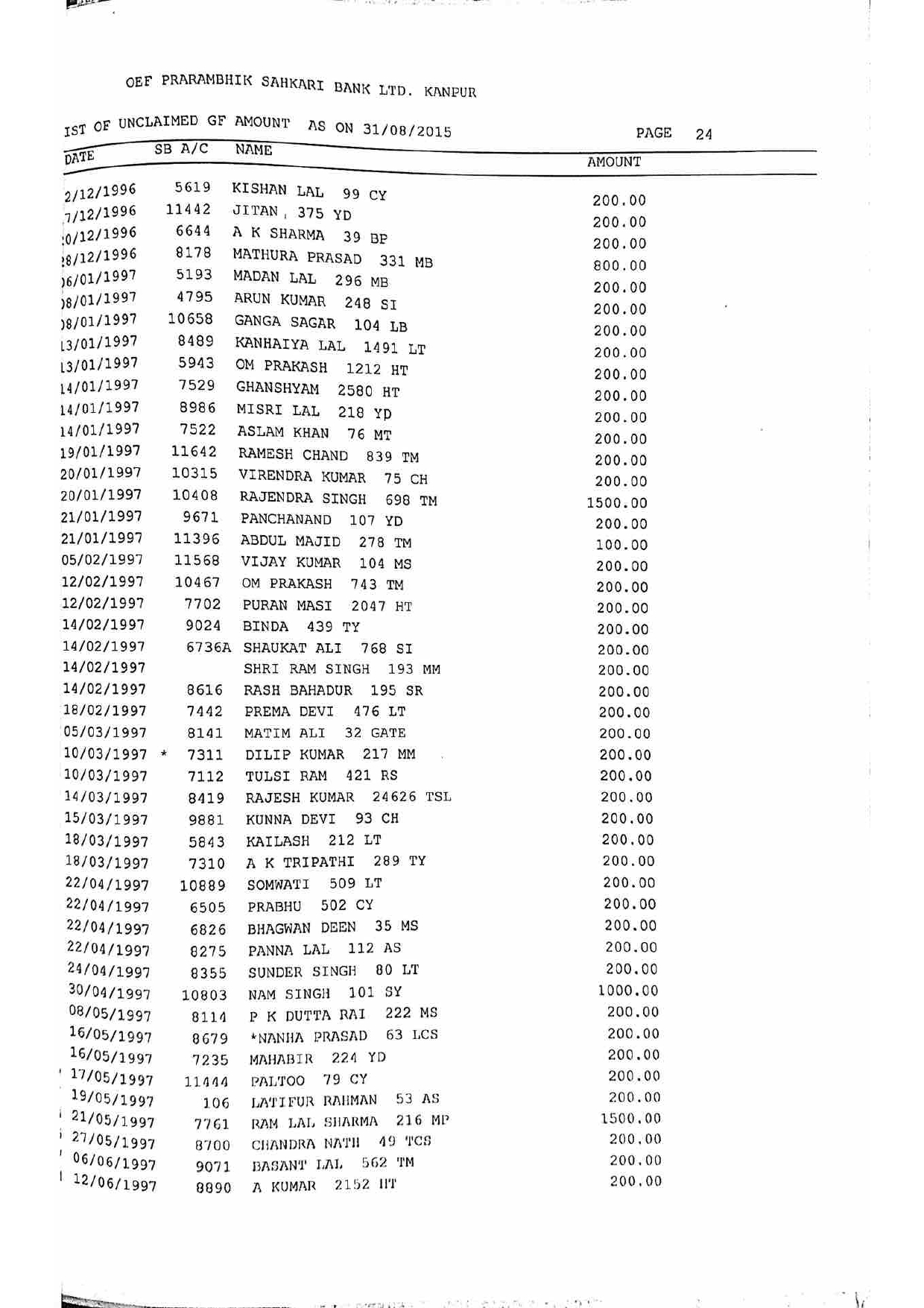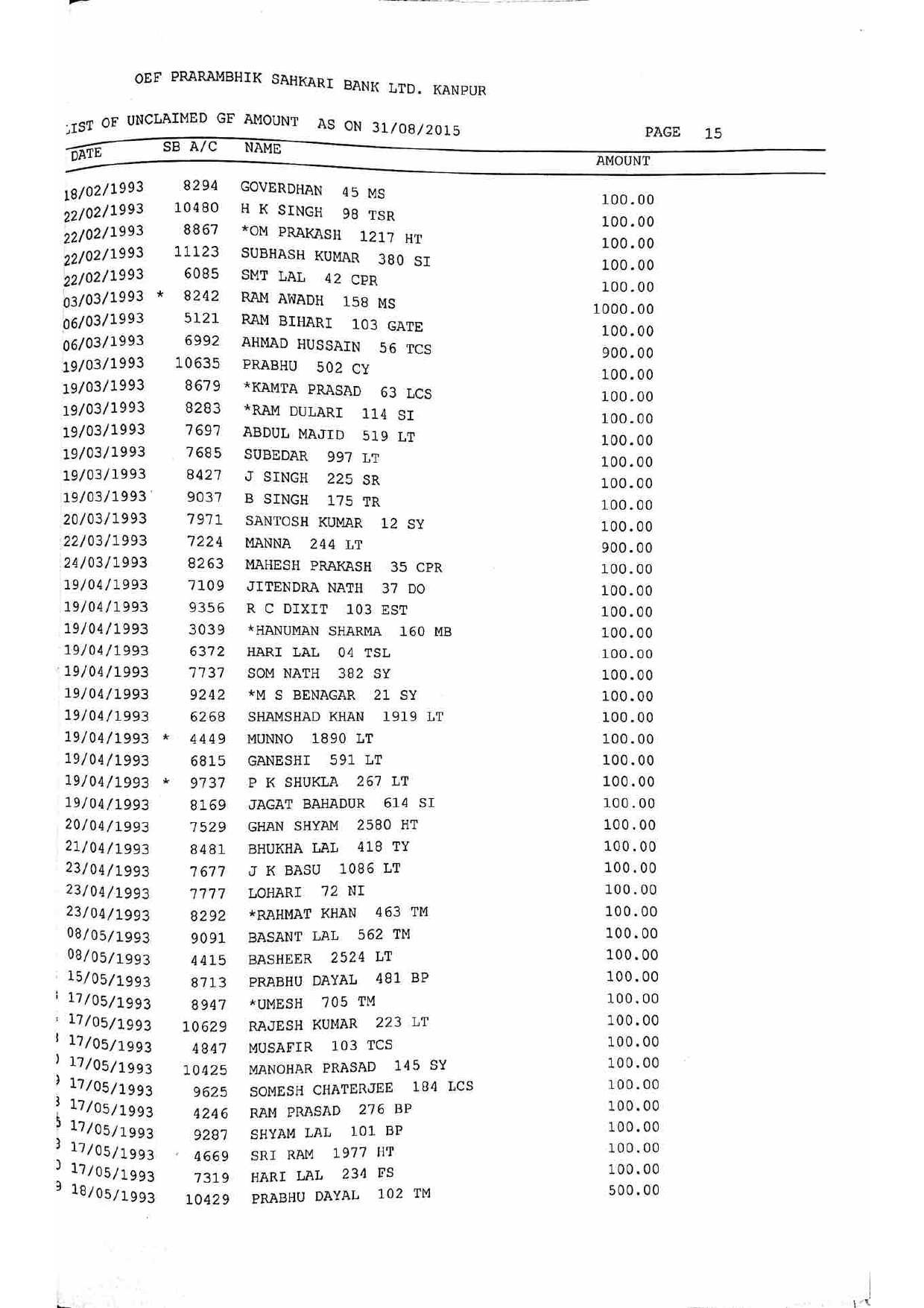 For Unclaimed Deposit data you can click here-